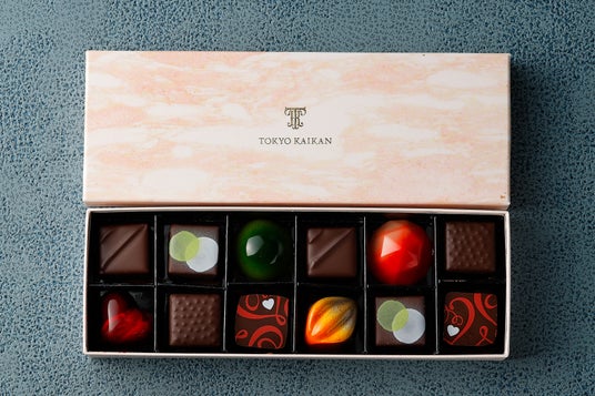 <内容>1.ガナッシュ ノワール:ハイカカオのチョコレートを使用、東京會舘定番の一品/2.ピスタチオ:ピスタチオの香ばしさとコクが広がるガナッシュ/3.キャラメルブールサレ:リッチな塩バターキャラメルボンボン、東京會舘定番の一品/4.スペキュロス:シナモンやクローブなどのスパイスとまろやかなホワイトチョコレートの組み合わせ/5.プラリネ:アーモンドとヘーゼルナッツのプラリネ、東京會舘定番の一品/6.カシスワイン:赤ワインと甘酸っぱいカシスのハート形のガナッシュ/7.グランマルニエ:オレンジピールが入ったグランマルニエのガナッシュ/8.温州みかん:フレッシュな温州みかんから作る爽やかな柑橘のガナッシュ