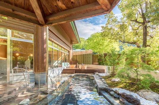 木々に囲まれた庭園風の露天風呂は開放感に溢れ、夜には満天の星を眺めながら贅沢な入浴タイムが楽しめます