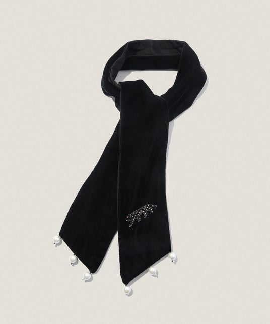 レオパード 刺繍 タイパールを四隅につけ、アクセサリーのように使えるようにしました。ドレスはもちろん、シャツ、トレーナー、ニットなどの首元にさっとあしらって。ドレスアップのシーンでも、これだけでぐっと華やかになります。