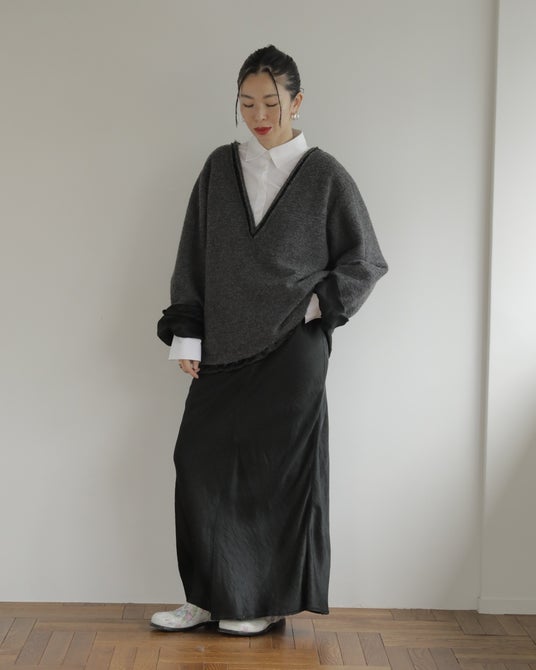 【YOSHIMI NAGAO】Vネックトップス 29,700円、サテンロングスカート 29,700円