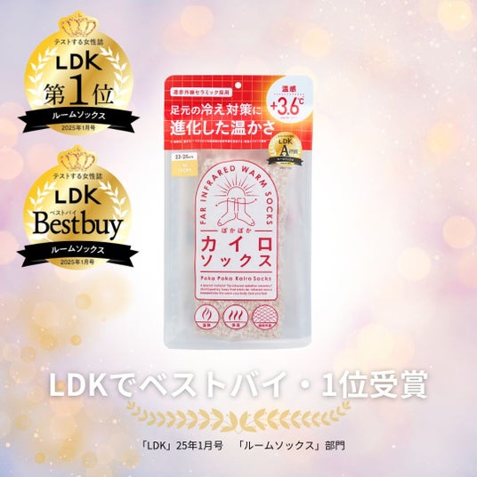 株式会社i.D(東京港区/代表取締役 堀井昭一)から発売した温活ブランド、履くだけで足元の温感が+3.6℃、冷え対策アイテム「ぽかぽかカイロソックス」がテストする女性誌『LDK 25年1月号(11月28日販売)』にて、ベストバイ&部門1位をW受賞いたしました。