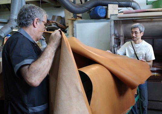 素材を厳選し、植物タンニンでなめし、出来るだけ少ない表面加工を行い、素顔に近い革に仕上げています。実際に職人がタンナーと何度も話し合いをし、試作を重ねていく中で完成したオリジナルレザーです。