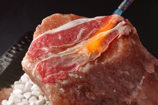 国産牛を贅沢に使用した岩塩炙り焼き。シンプルながら確かな技で焼き上げることで、しっとりとした肉質と深い旨味を引き出し、口の中でとろけるような食感をお楽しみいただけます。岩塩の純粋な味わいが、肉本来の芳醇な風味を一層際立たせます。