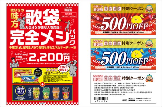 コロワイドグループの株式会社アトム(本社:神奈川県横浜市、代表取締役社長:田中公博)は2024年12月1日(日)よりカラオケ時遊館全店にて、年末シーズンに合わせたお得な「歌袋/完全メシパック」の販売を実施いたします。