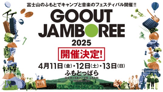 アウトドアファッション雑誌「GO OUT」が主催する、キャンプ初心者から、ソロ、カップル、ファミリーまで、誰もが楽しめるキャンプフェス「GO OUT JAMBOREE 2025」が、2025年4月11日(金)~13日(日)の3日間、ふもとっぱら、富士オートキャンプ場ふもと村(静岡県富士宮市)にて開催決定。富士山のふもとで、今回11回目の開催を迎えます。