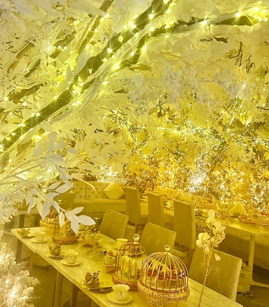 店内は一面のもみの木で囲まれ、雪景色をイメージした内装になっており、その中で楽しむゴールドのアフタヌーンティーは冬の贅沢を詰め込んだゴージャスな仕上がりになっております。