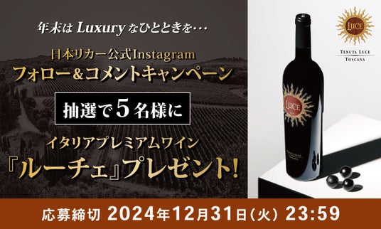 年末はluxuryなひとときをご提案したいという想いのもと、『年末はルーチェで乾杯!』をキーワードに、日本リカー公式Instagramにてフォロー&コメントキャンペーンを12月の1か月間実施し、イタリアプレミアムワイン「ルーチェ」を抽選で5名様にプレゼントいたします。