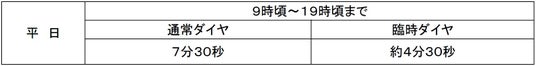 (初電から9時頃までと22時頃から終電までは通常ダイヤでの運転となります)