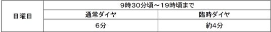 ○日中時間帯は増発し、下記の運転間隔となります。(1時間あたり5~6本増発します)