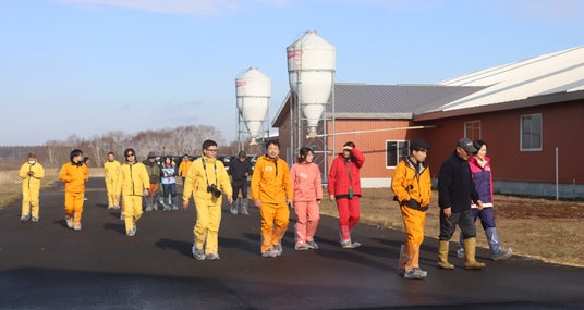 牛舎、家畜・植物防疫研究室、馬介在活動室を有するFSCを見学します。