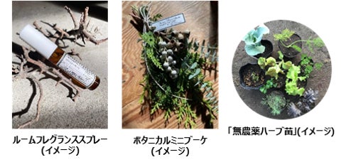 また、12月14日(土)・15日(日)の2日間、各日限定10名様に、クリスマスシーズンにぴったりなルームフレグランススプレーとボタニカルミニブーケを制作し植物と香りの魅力を体験いただける特別なワークショップ(※ご参加いただいた方全員に「無農薬ハーブ苗」をプレゼント)を開催することとなりましたので、お知らせいたします。