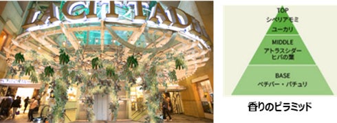 施設内3か所のイルミネーションゾーンにて、それぞれにテーマ性をもたせた創造的なボタニカル装飾と、今回のために調合された特別な香りを演出し、視覚のみならず、嗅覚や触覚といった感覚でもお楽しみいただける新たな体感型イルミネーションを展開しています。