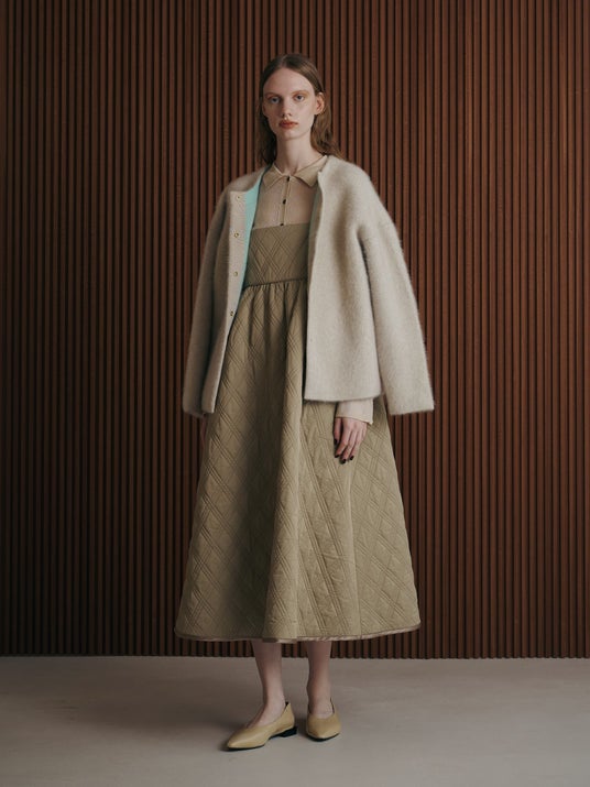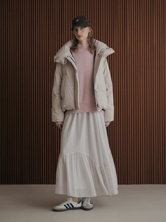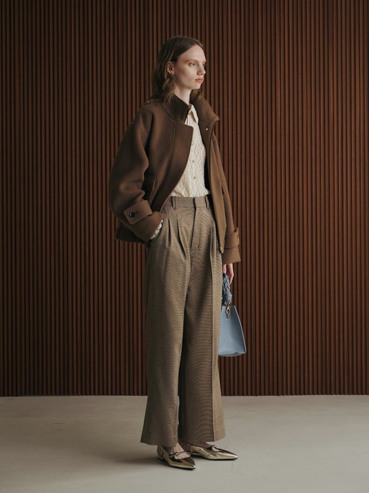 PECOLAMBウールカシミヤスタンドカラージップブルゾン ¥39,600(税込) カラー:オフホワイト/モカ サイズ:S/M