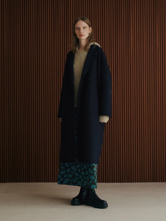 PURE LAMBS リバーロングコート ¥39,600(税込) カラー:グレージュ/イエロー/Dネイビー サイズ:S/M