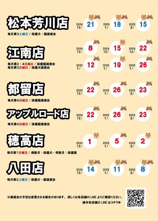 長野・山梨・愛知県の綿半店舗にて譲渡会を開催!