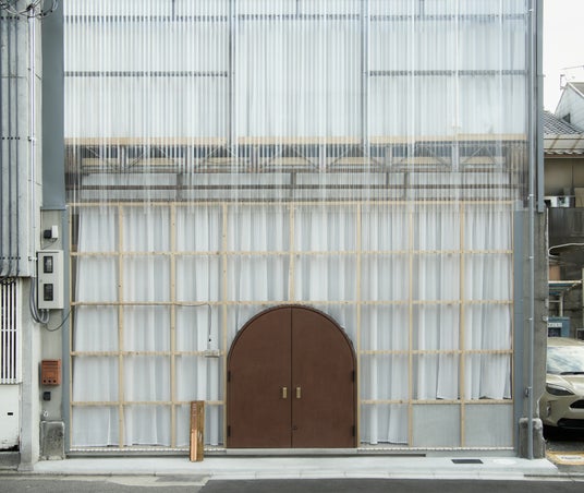 錆色の大きな扉と波板が目を惹く建物は、資材置き場として使われていた古い倉庫で、扉を開くと雑多な倉庫のイメージとは相見えない凛とした和空間が混在する異空間が広がります。天然鞍馬石でしつらえた迫力あるフラワーディスプレイは、和室の床の間に見立てました。店内中央のカフェスペースは、大理石とアクリル天板の迫力ある大テーブルを設えました。店舗二階はアトリエです。季節に合わせた花を用いたワークショップを不定期に開催しています。撮影、ギャラリーやイベント、ポップアップスペース等、様々な用途として貸出しも可能です。
