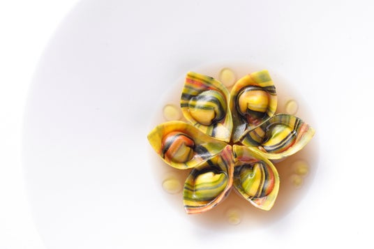 たとえば、ヴィーガンコースで提供している『農園の花』は、野菜をパウダーにして生地に練り込んだラヴィオリで、素材を余すところなく使用したひと皿。「FARO」が大切にしている想いを体現しています。