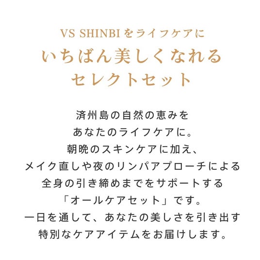 お買い上げをご検討いただく中で、未だ実体験していただく場所を設けることができていないため、よりVS SHINBIを手に取りやすく…という想いを込めまして、VS SHINBIが特におすすめする主力2点の商品をセット販売いたします。