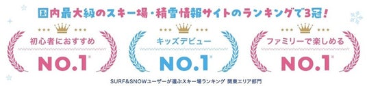 スキー場情報サイトのユーザーランキング3部門で関東エリアNo. 1 を 2 年連続で獲得!