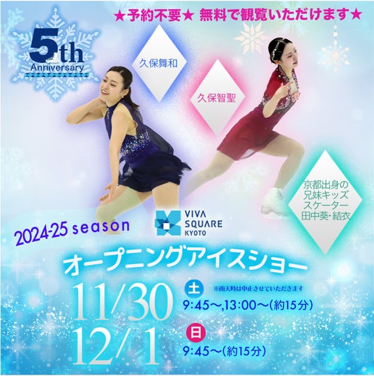 11月30日(土)・12月1日(日)のオープニングイベントでは、久保舞和さん、久保智聖さん、田中葵さん、田中結衣さんを迎えて、この日だけの特別なアイスショーを開催。音楽に合わせた華麗な滑りを至近距離で見ることができます。