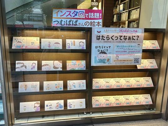 つむぱぱさん作画の絵本『はたらくってなぁに?』が全ページパネルになって展示中!@神保町ブックハウスカフェ[12月3日(火)まで]~ぜいけんえほん~
