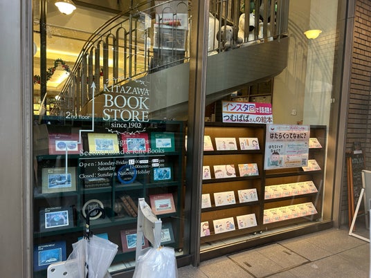 ぜいけんえほんシリーズ『はたらくってなぁに?』が神保町の絵本専門店「ブックハウスカフェ」さんのウインドウディスプレイにて、パネル展示中!