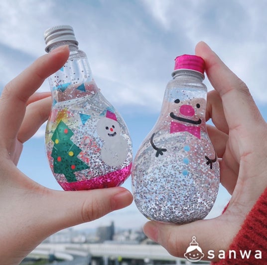 可愛い電球型のプラスチック瓶にラメとフロストグラスを入れ、キラキラ舞っている世界を作りませんか?