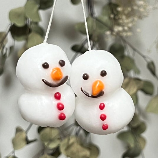 ロウで目や鼻のパーツを作り、真っ白な雪だるまに顔を作ってあげましょう!