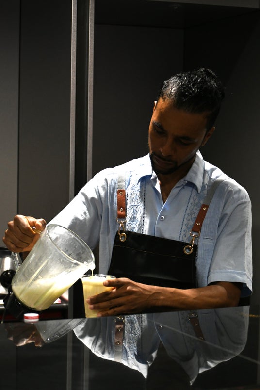 カクテルやソフトドリンクを提供するのは、バーテンダーのハビエルさん。