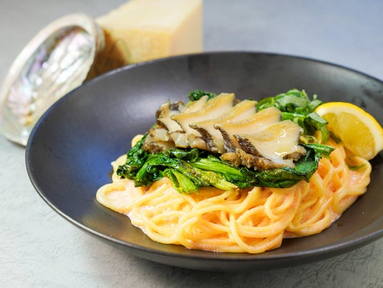 贅沢の極み!アワビをまるごと使用した【炎のチーズパスタ アワビと明太子のクリーミーチーズパスタ】販売開始。イタリアンレストラン「Cheese Tavern CASCINAチーズタバーンカシーナ」では、12月限定メニューとして、看板商品【炎のチーズパスタ】の最新作「アワビと明太子のクリーミーチーズパスタ」を販売開始いたします。