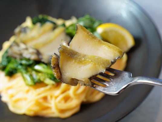 炎のチーズパスタ新作!アワビをまるごと使ったクリーミーチーズ明太子パスタ
