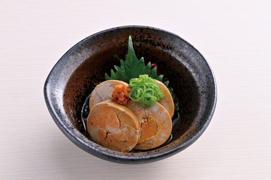 あん肝ぽん酢あんこうの肝臓の”あん肝”は、濃厚でクリーミーな味わいが特徴です。ぽん酢の爽やかな酸味が、口の中をさっぱりとさせてくれます。お箸をついつい出したくなる美味しさが堪りません。