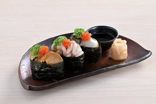冬の軍艦三種「濃旨あん肝」「真鱈白子」「瀬戸内産牡蠣」の軍艦三種は、冬の寒いこの時期だからこそ味わえる贅沢な一品です。