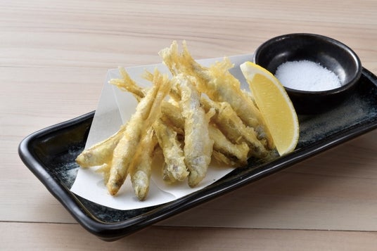 わかさぎの天ぷら“わかさぎ”を天ぷらにしました!衣のサクサク食感と、骨まで柔らかく、ふっくらとした“わかさぎ”の身の食感との絶妙なバランス。