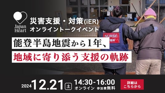 日本発祥の国際医療NGOである(認定)特定非営利活動法人ジャパンハート(東京都台東区 理事長:吉岡春菜 以下ジャパンハート)は、令和6年能登半島地震から1年を迎える2024年1月を前に、地域と共に歩んだ災害支援活動の軌跡を報告し、これからの災害支援を考えるオンラインイベントを2024年12月21日(土)14時30分から開催します。