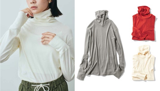 吸湿発熱機能のある綿フライス素材のタートルネックトップスです。やわらかな肌当たりの薄手素材で心地よくフィットします。一枚ではもちろん、重ね着しもしやすいシルエットです。首もとにすっきり沿う衿高なデザインで、。着こなしの幅が広がる3色展開です。