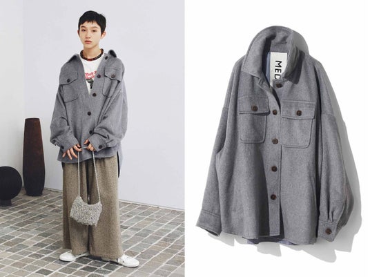 MEDE19F 起毛素材のオーバーシャツジャケット〈グレー〉