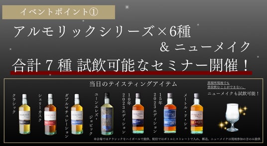今回のイベントにあたり、少数生産の希少ボトルを含めたシリーズ7種に加え、現地でも普段飲むことのできないニューメイクをご用意できることになりました!(輸入の都合でニューメイクが用意できない場合は代替品を用意します。)この機会にぜひニューメイクを召し上がってみてはいかがですか?