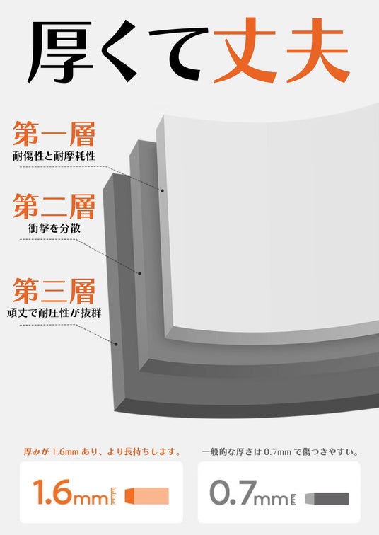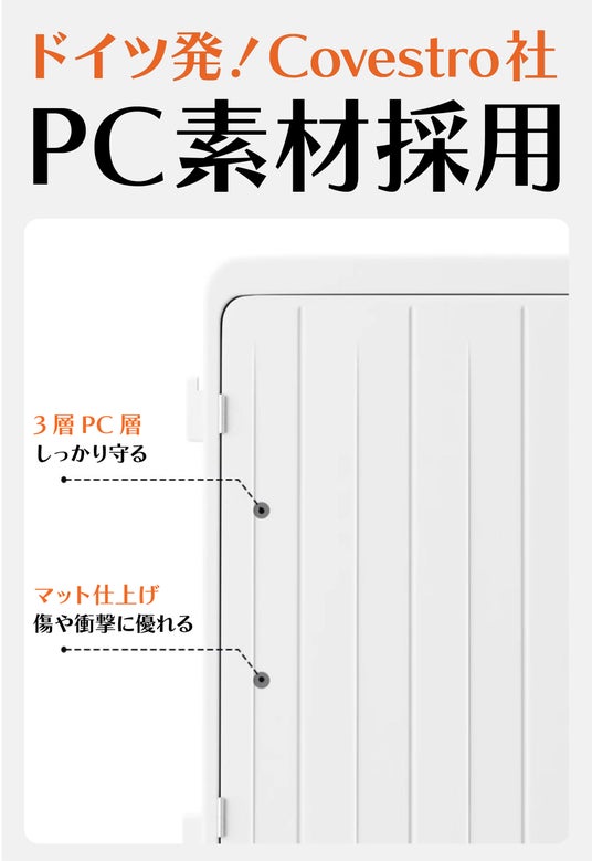 ・アルミ合金フレームを内蔵し、3層の頑丈なPC素材を採用