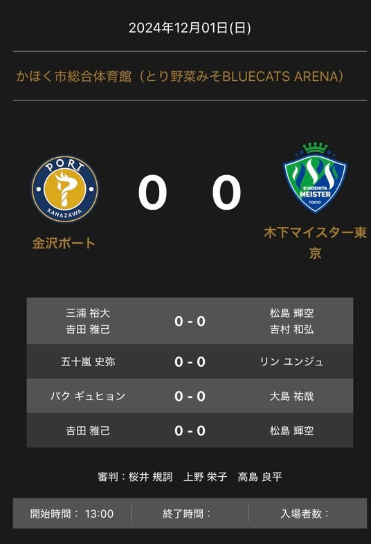 ノジマTリーグ 2024-2025シーズン 公式戦 12月1日開催の「金沢ポート vs 木下マイスター東京」の対戦オーダーを発表いたします。