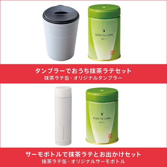 上:タンブラーでおうち抹茶ラテセット 下:サーモボトルで抹茶ラテとお出かけセット