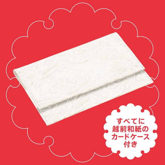 すべての賞に越前和紙のカードケース付き2025年福袋¥8,500セット限定商品「茶の花に包まれるお茶缶」に使われている、手漉き越前和紙「浮き紙」を使用したカードケース。