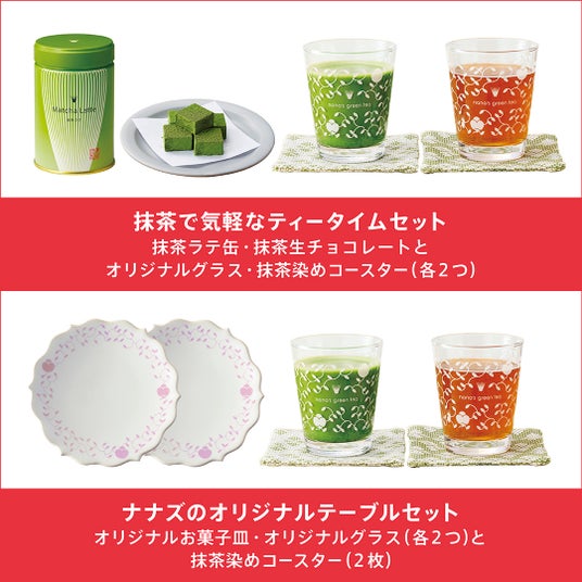 上:抹茶で気軽なティータイムセット 下:ナナズのオリジナルテーブルセット