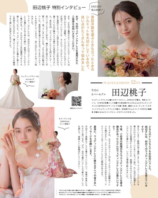 【2024年12月号】俳優 田辺桃子さんが『PLACOLE&DRESSY』のカバーモデルとして登場!