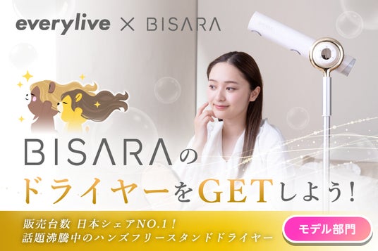 ハンズフリーで使える「BISARA」のヘアドライヤーをGETしよう!ライブ配信アプリ「everylive(エブリライブ)」が話題の「BISARA」とのタイアップイベントを開催