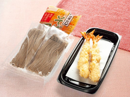 サクサク衣の特製大海老天ぷらと香り豊かな生そばがセットになった「年越しそば」などの商品がお手頃な価格でお楽しみいただけます。