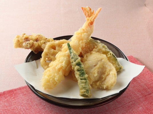 ●大海老と鶏ちくの賑わい天ぷら盛り合わせ:通常価格499円(税込538円)