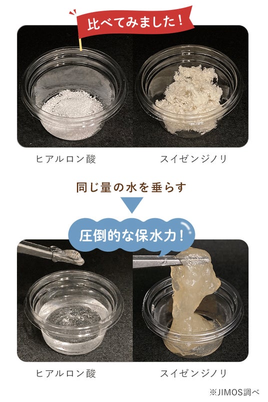 そして新たに、保湿成分スイゼンジノリを配合。1gで30Lもの水を蓄える保水力を持ち、ヒアルロン酸の5倍ともいわれています。保水することでバリア機能をサポートし、肌を潤します。