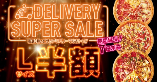 特大セール2. デリバリースーパーセール:「3種の大人気ピザが配達なら最大2,250円おトクになるんだとか…」