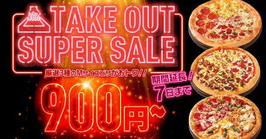 特大セール1. テイクアウトスーパーセール:「3種の大人気ピザがお持ち帰り限定で900円~になって登場!」
